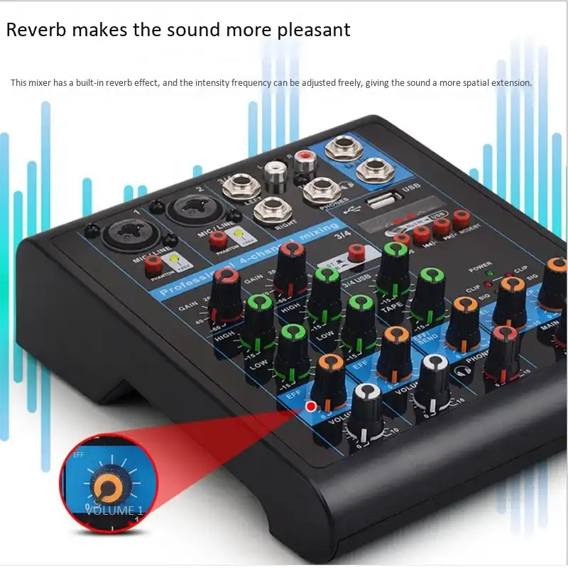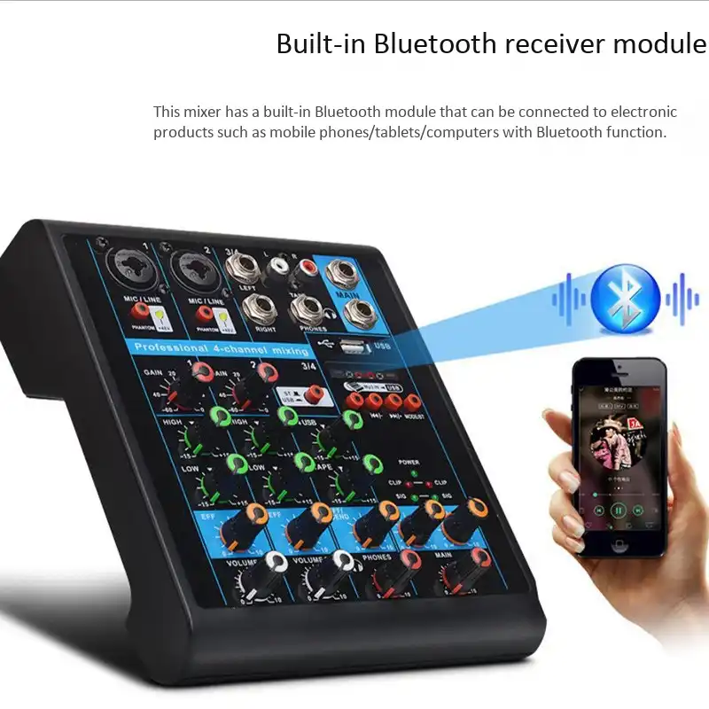 Eu Plug Professional 4-Channel Small Bluetooth Mixer With Reverb Effect Home Karaoke Usb Live Stage Karaoke Performance Conferen