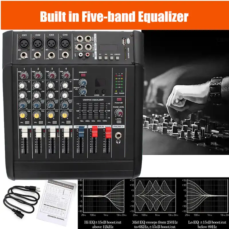 Профессиональный звуковой микшер с USB DJ микшерная консоль MP3 Jack 4 канала караоке усилитель для караоке матч Вечерние