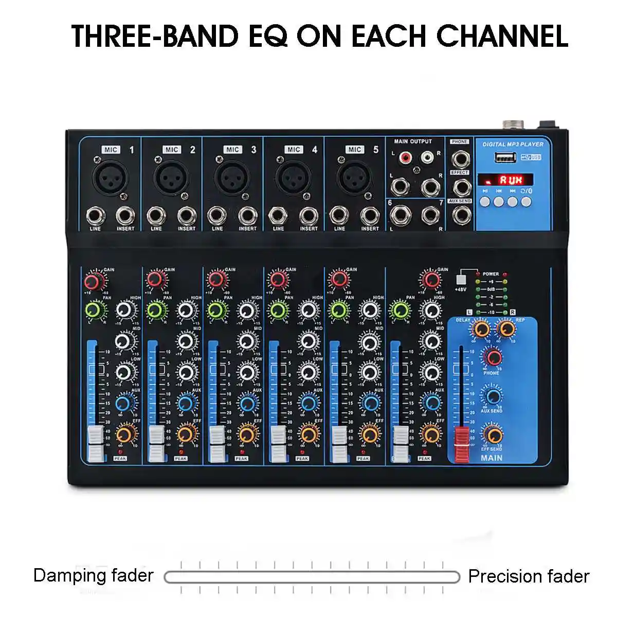 7-канальный bluetooth цифровой микрофон, звуковой Миксер с USB, диджейский звуковой микшерный пульт, усилитель ЕС/США для караоке KTV Match Part