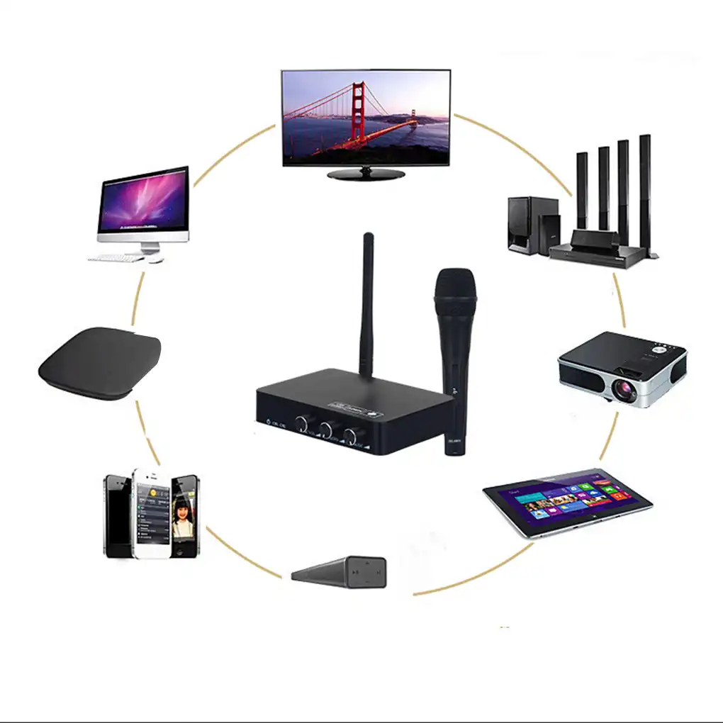 Профессиональная Беспроводная микрофонная система с 2 микрофонами, чтобы вы могли наслаждаться музыкой с друзьями.
