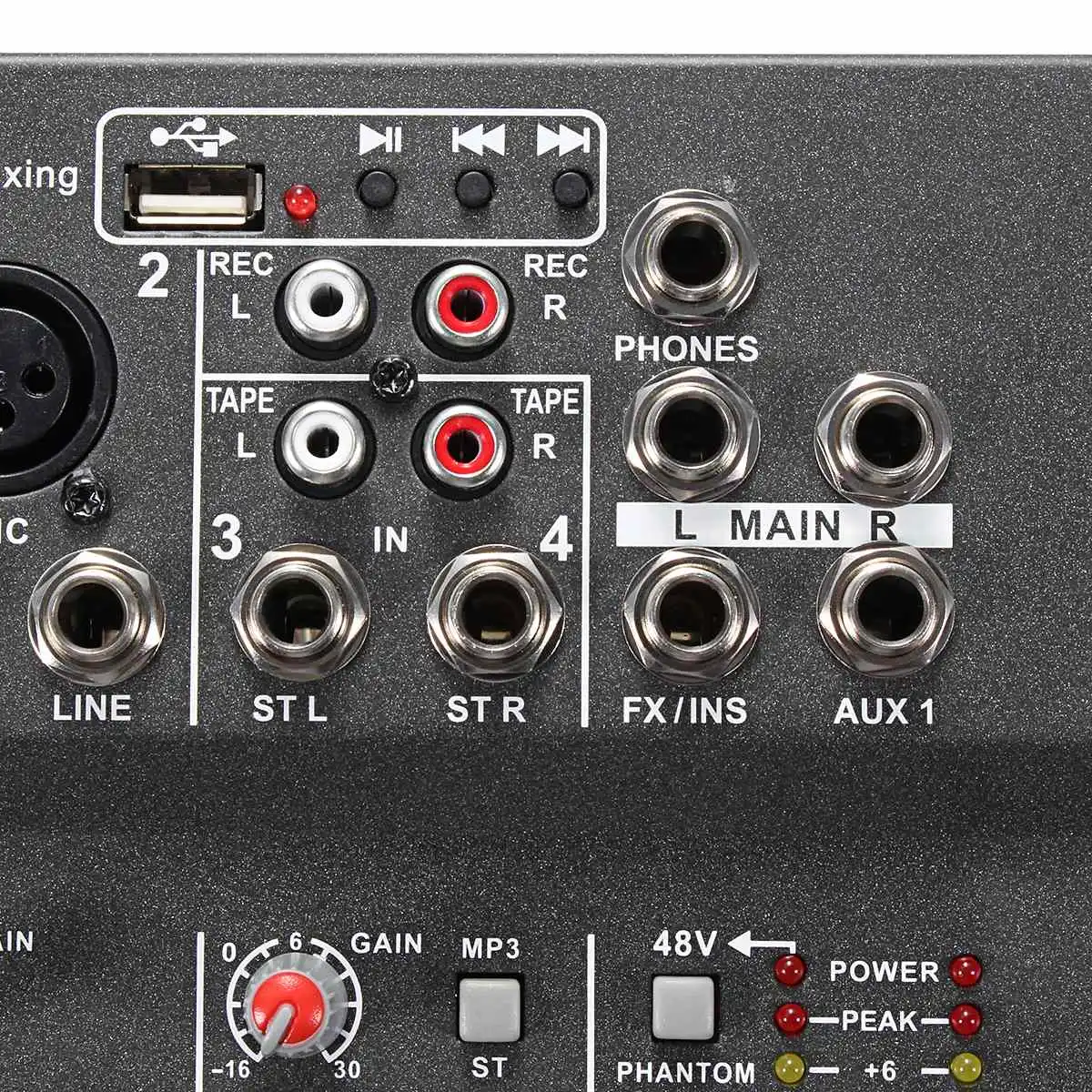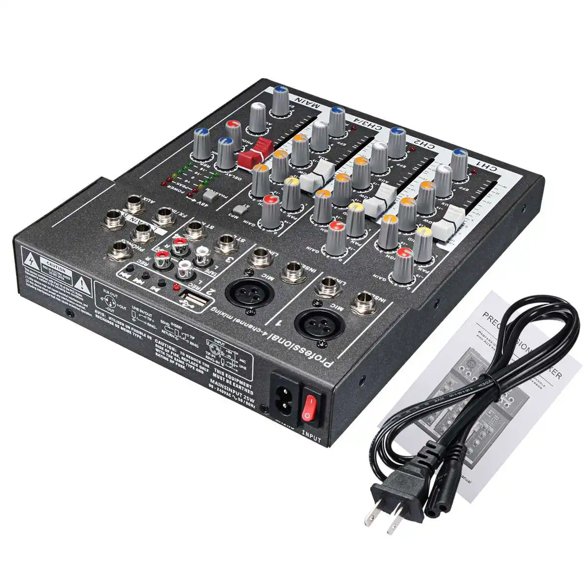 LEORY 4-канальная звуковая консоль для караоке, профессиональная студийная запись звука, черный/серебристый миксер, звуковая карта
