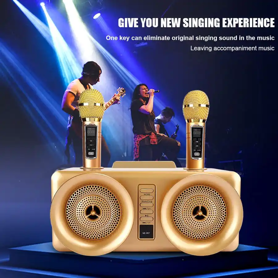 Семейный караоке звук Bluetooth динамик двойной беспроводной микрофон подключение ТВ Поддержка записи песни