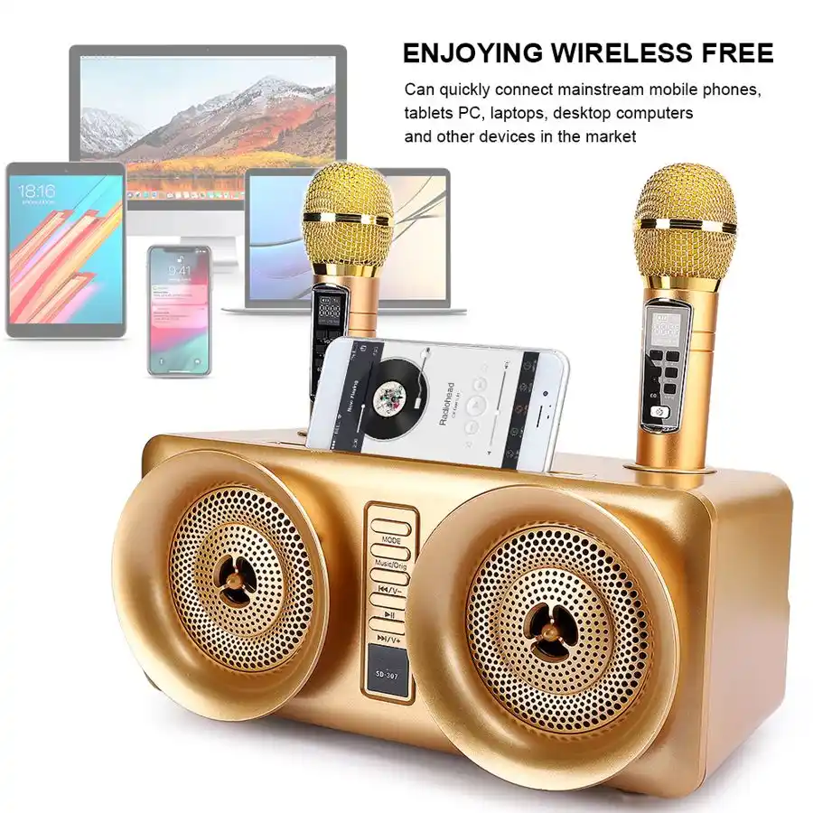 Семья караоке звук Bluetooth динамик двойной беспроводной микрофон подключение ТВ Поддержка Запись песня