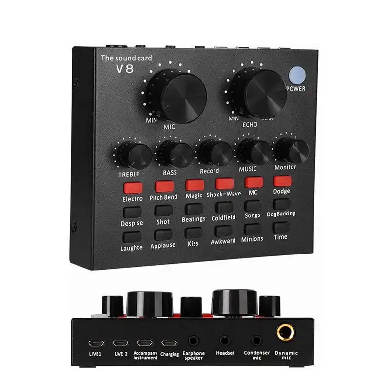 Звуковая карта V8 voice changer обеспечивает эти ручки, вы можете настроить и использовать эти функции в соответствии с вашими предпочтениями
