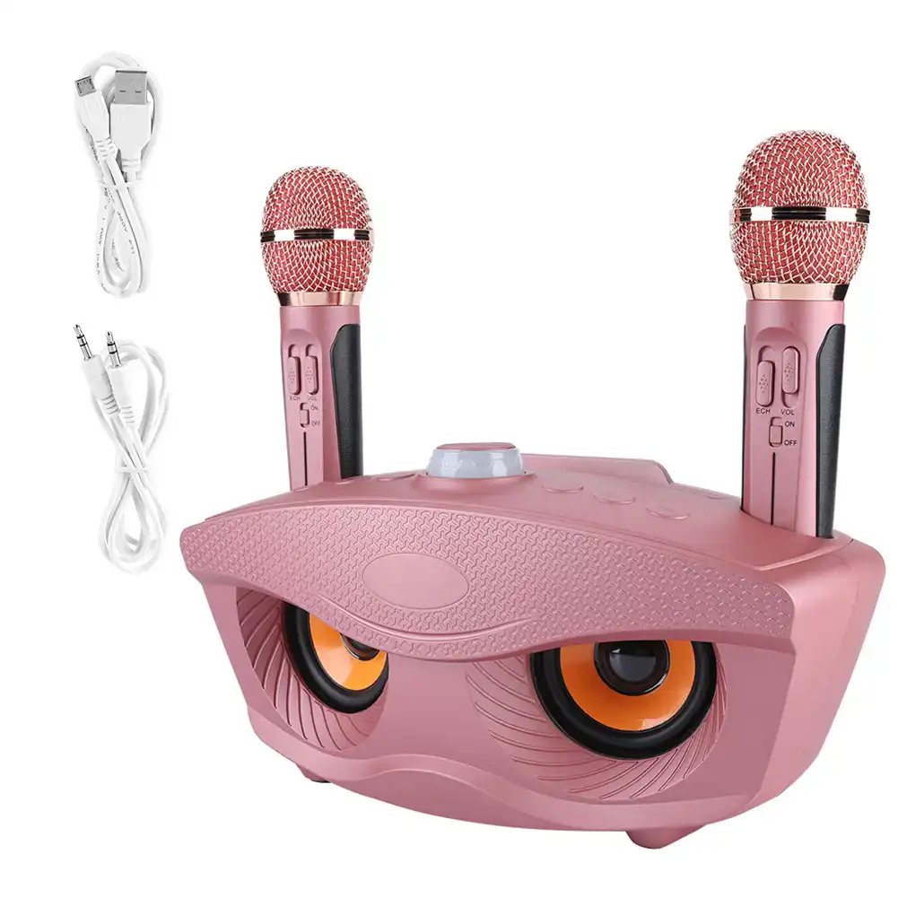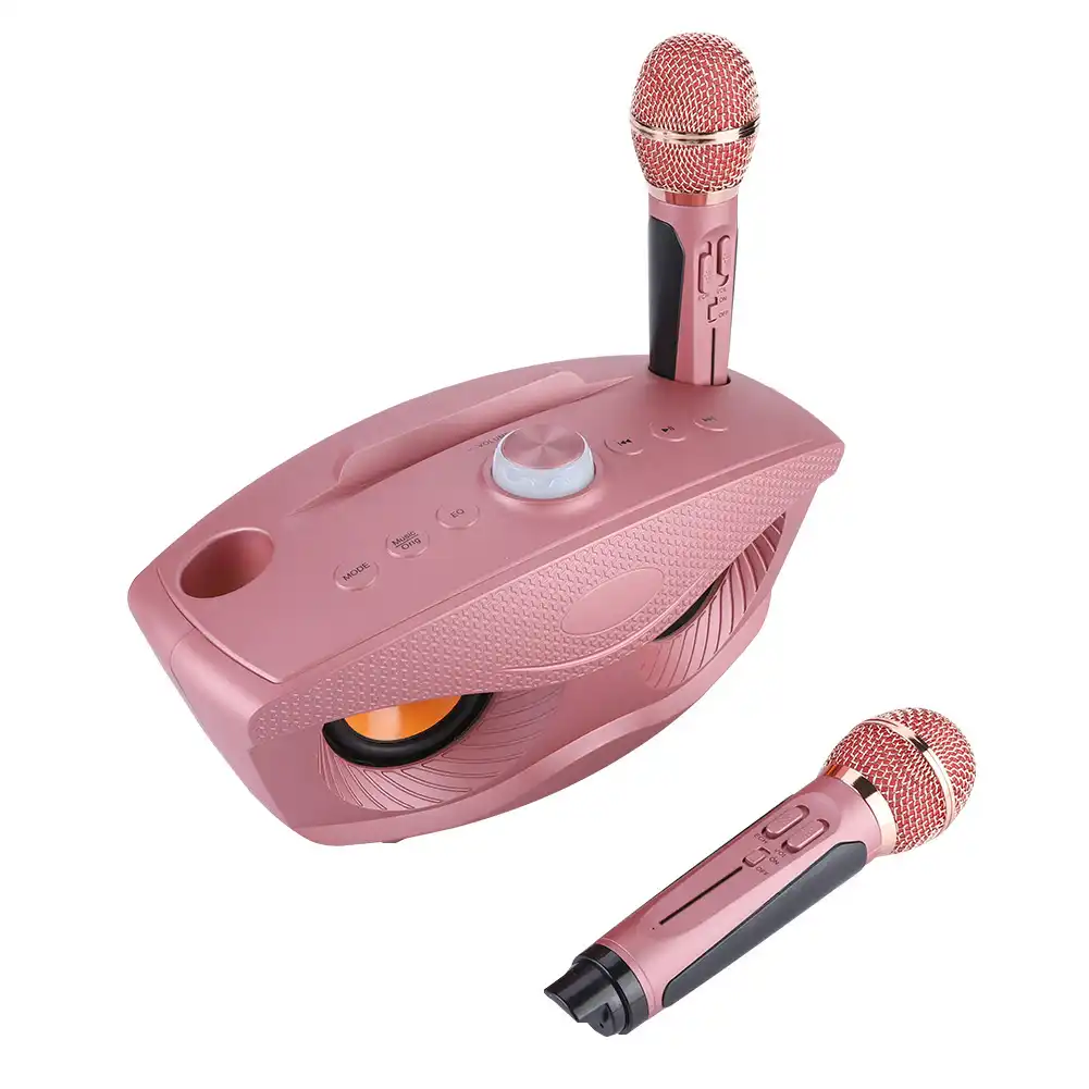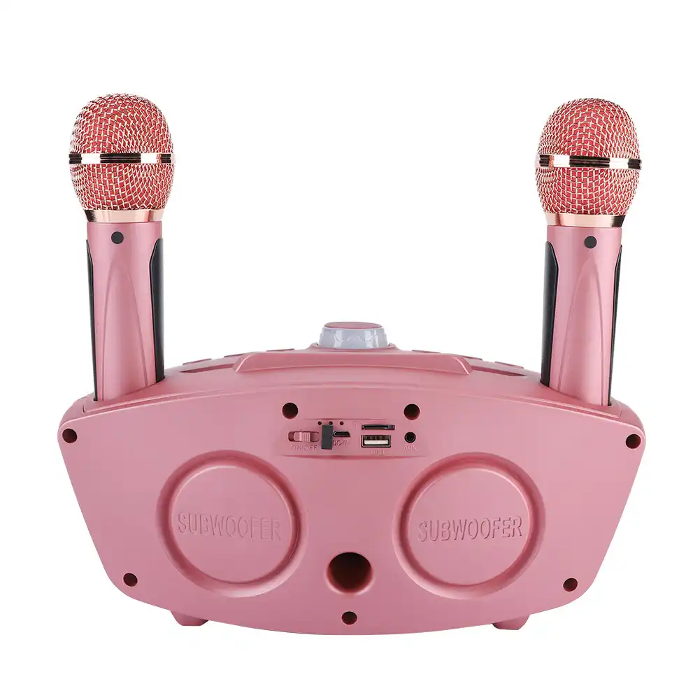 Караоке беспроводной Bluetooth спикер домашний 2 Mircophones FM радио розовое золото