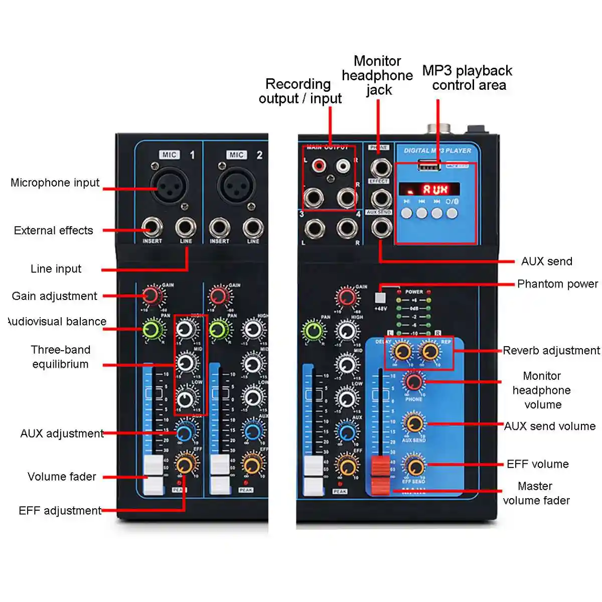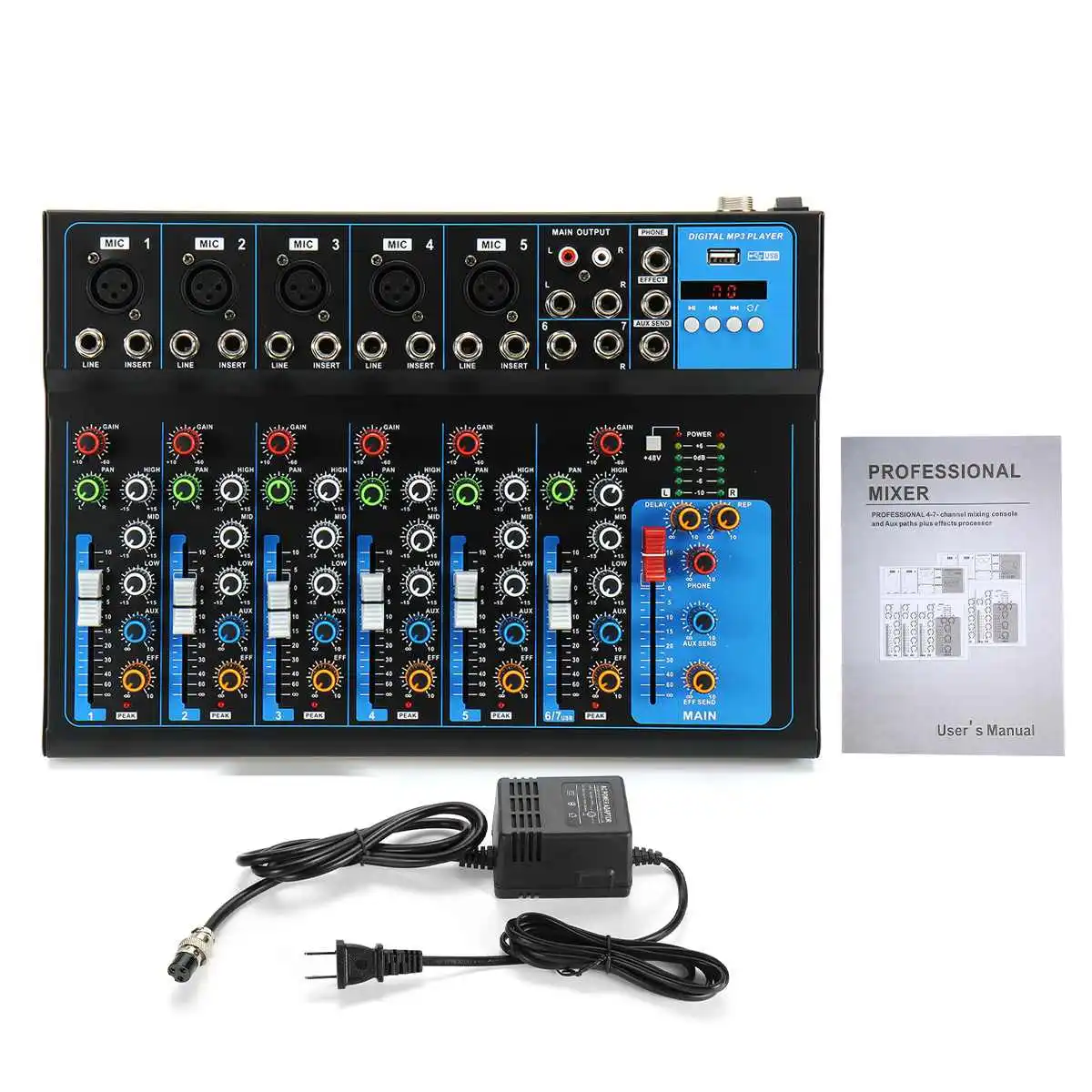 Портативный аудио микшер с bluetooth, с USB, DJ звуковая микшерная консоль, MP3 Разъем, 7-канальный караоке-усилитель, караоке, KTV, подходит Вечерние