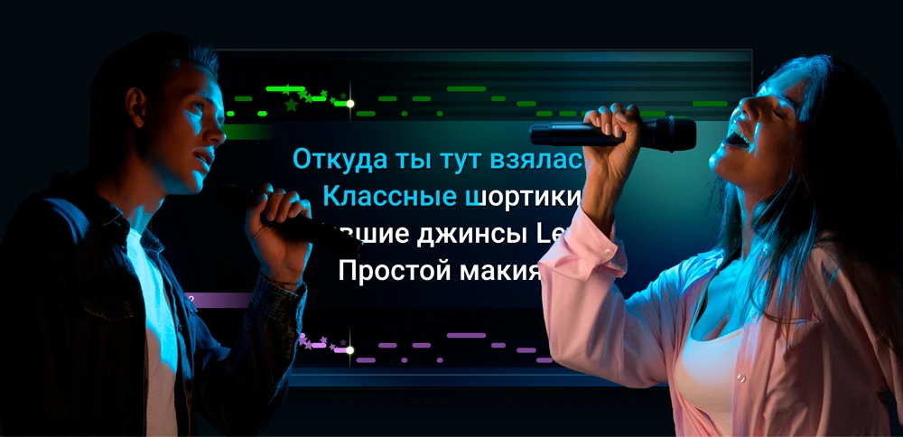 Попробуйте несколько режимов исполнения. Вы можете петь сами или вдвоем, набирая общие баллы. А можете сразиться в караоке-баттле, где у каждого вокалиста будет своя нотная подсказка и свой счётчик баллов.